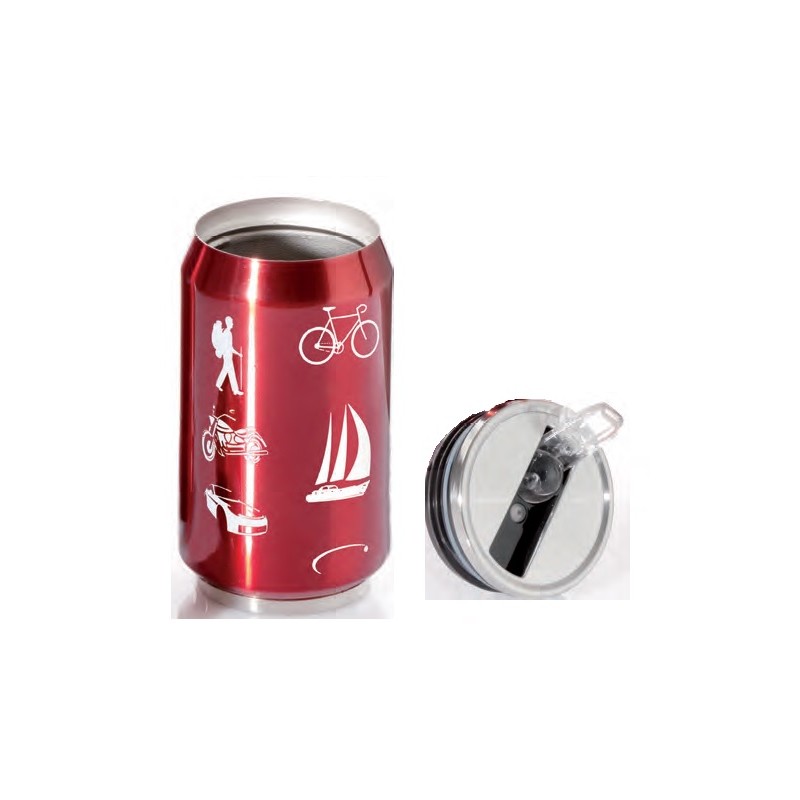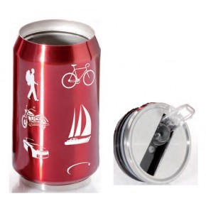 Thermo 0.28 l. Red 18/10 stainless steel. It keeps the heat for 12 hours and cold for 6 hours. Very practical and beautifully designed.