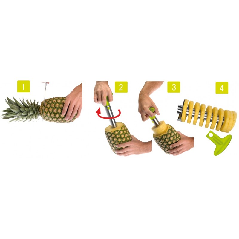Pineapple Cutter stainless steel. Peel and cut the pineapple into perfect slices in a few seconds.