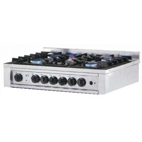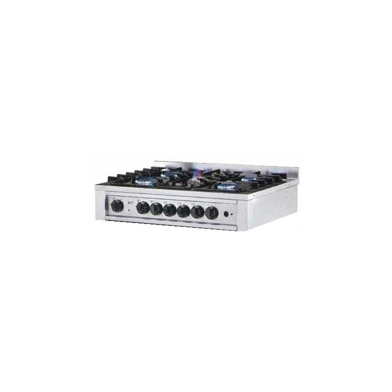 Cocina Encimera, construcción en acero inoxidable. Parrillas en hierro fundido, desmontables de fácil limpieza. Encendido electrónico. Válvula de seguridad. 5 quemadores a gas.