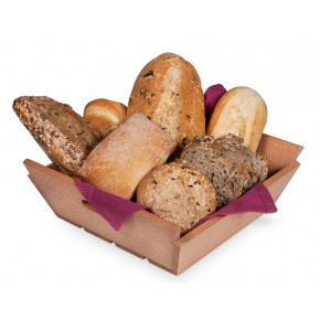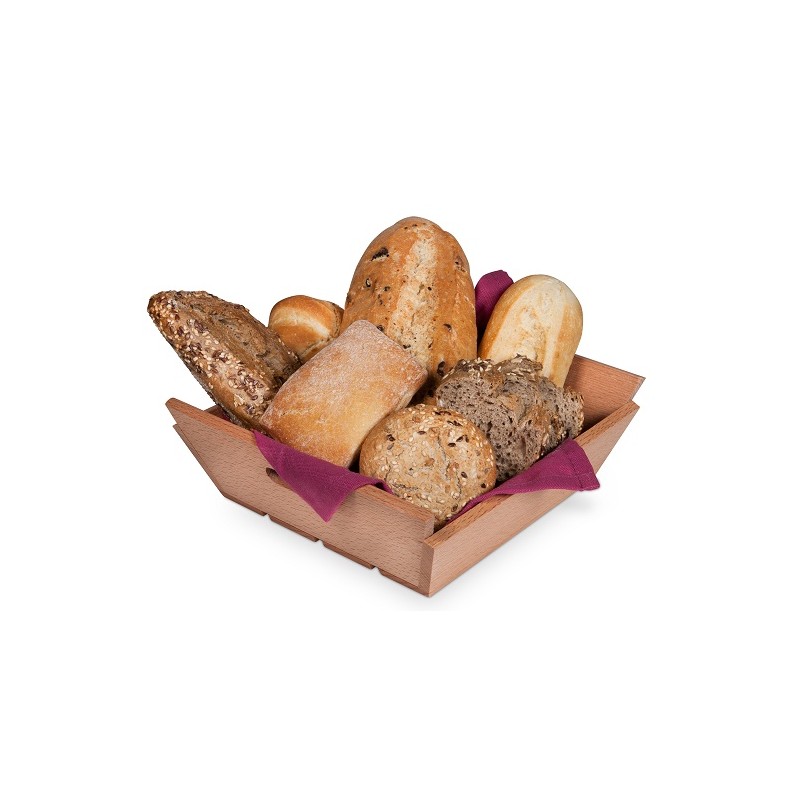 Cesta de Pan Madera 21 x 21 x 7 cm. fabricada en madera natural. Es higiénica, resistente y muy vistosa. Se puede usar tanto para pan como para fruta.