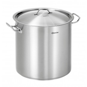 Olla Industrial con Tapa 25 Litros en formato vertical, también apta para inducción.