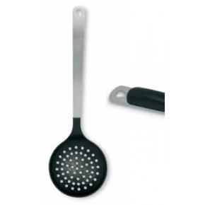 Schiuma di alta cucina. Un utensile da cucina che si distingue per la maniglia in raso con protezione in silicone per renderlo più facile da usare e fornire sicurezza. Resiste a temperature fino a 210oC.